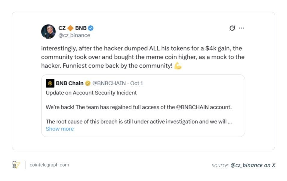 BNBUSD −2.07% BNBUSDT −2.09% Key takeaways: CZ’s mention turned meme [...]