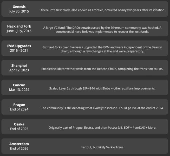 Since its launch in July 2015, the Ethereum network has undergone several major upgrades to improve scalability, security and performance.